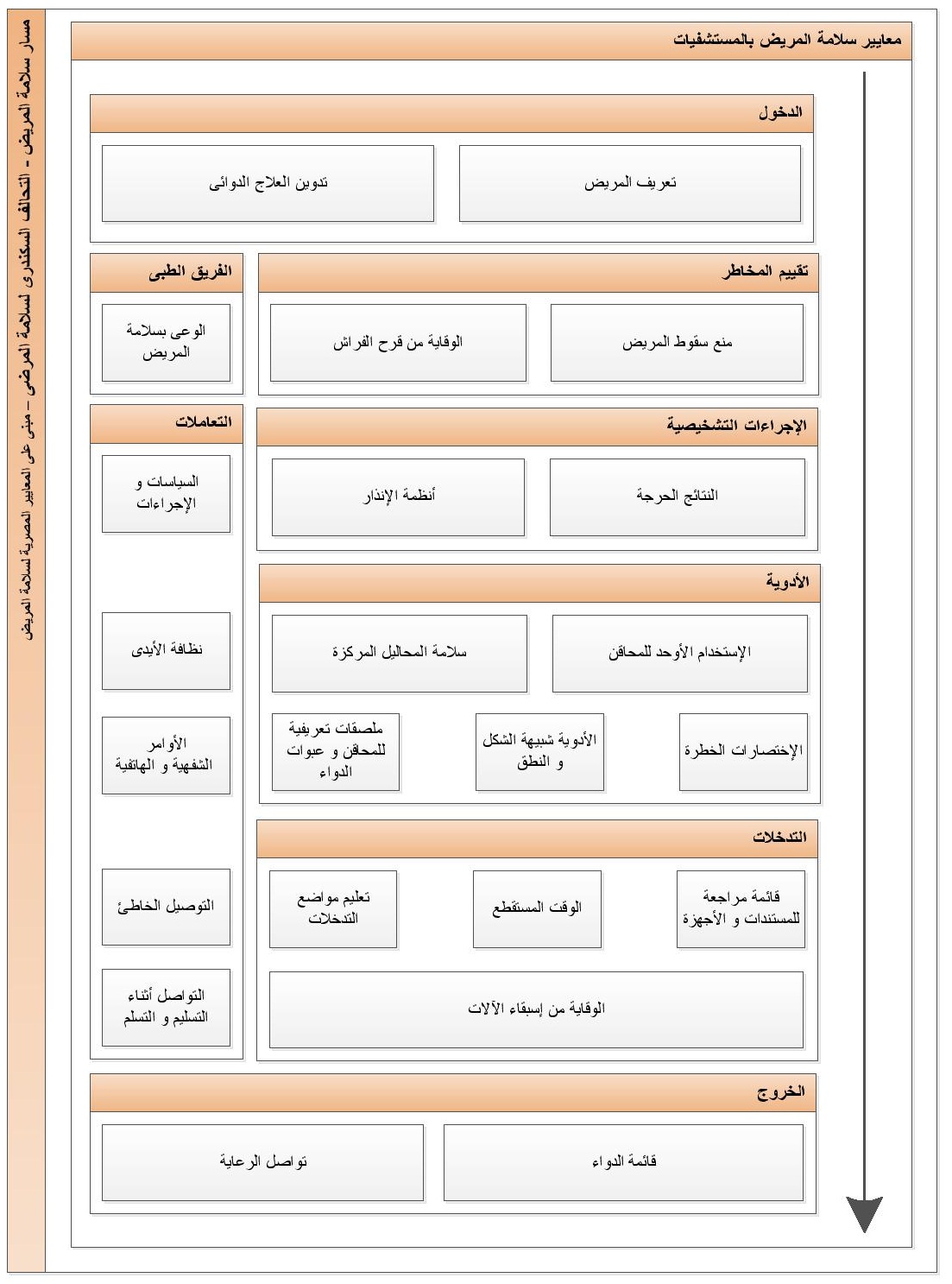 من خلال معرفة الممارسات الآمنة، وأين ومتى يجب أن تمارس، وكيف يتم تطبيقها يمكن لأى نظام رعاية رعاية صحية ضمان سلامة مرضاه.في هذا القسم نقدم المعايير المصرية لسلامة المرضى، كما هي مدونة، الخلفية السببية لها، وأهم أماكن تطبيقها، وكيفية تقييم تنفيذها.